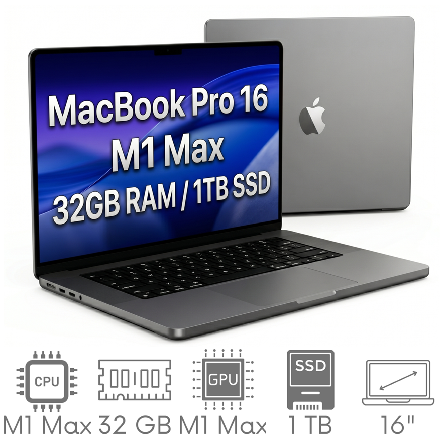 MacBook Pro – profesjonalna stacja robocza. Aktywne chłodzenie (100% wydajności przez godziny), ekran XDR mini-LED 1600 nit 120 Hz, chipy Pro/Max do 128 GB. Używany Pro M1 Pro/M2 Pro z 32 GB – sweet spot dla montażystów, muzyków i programistów.
