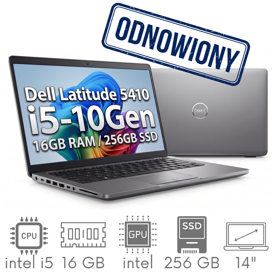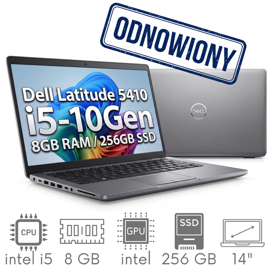 DELL Latitude 5410 i5-10210U 8GB 256 SSD 14" FHD 1920x1080 WiFi BT Kam Win11Pro Gw12mc