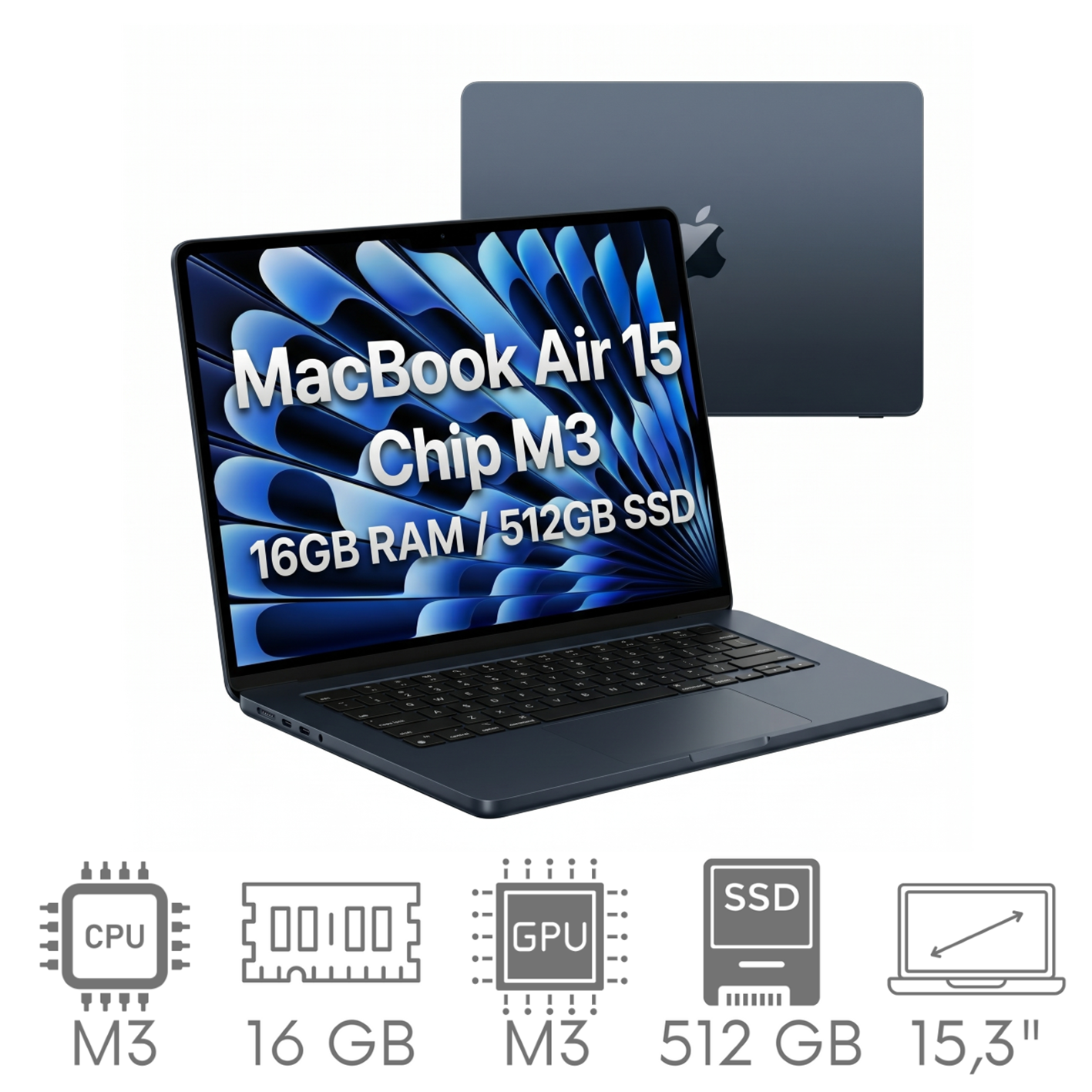 Apple MacBook Air 15 2024 A3114 M3 16GB 512 SSD 15,3" Retina 2880x1864 WiFi BT Kam MacOS Tahoe PL Gw12mc