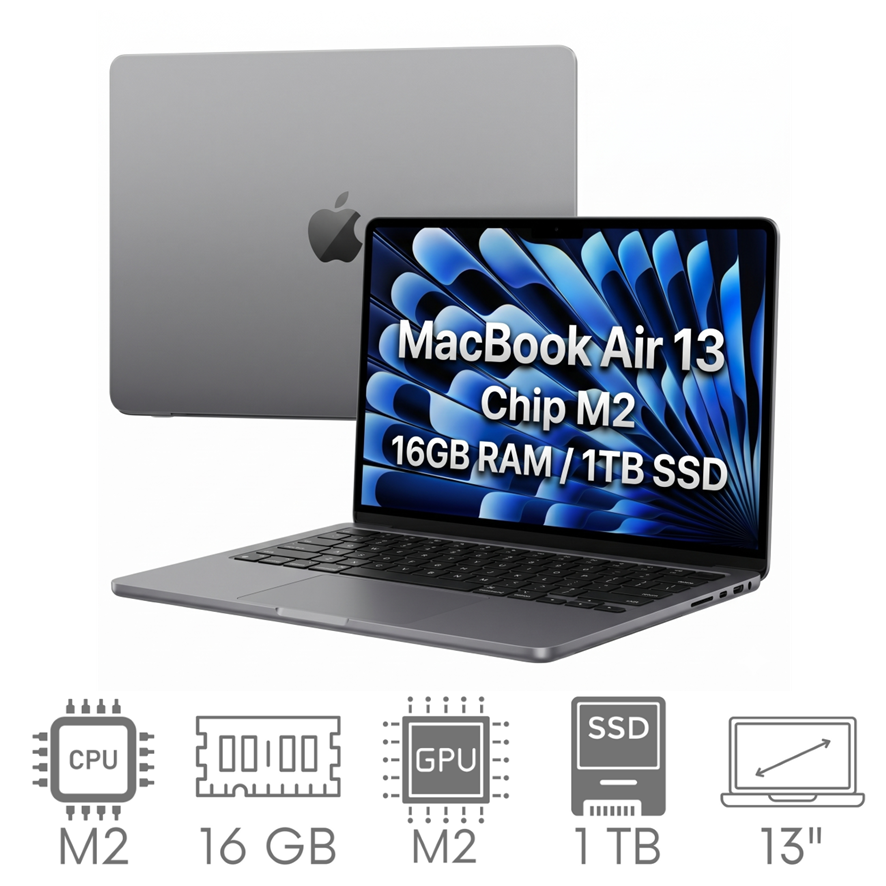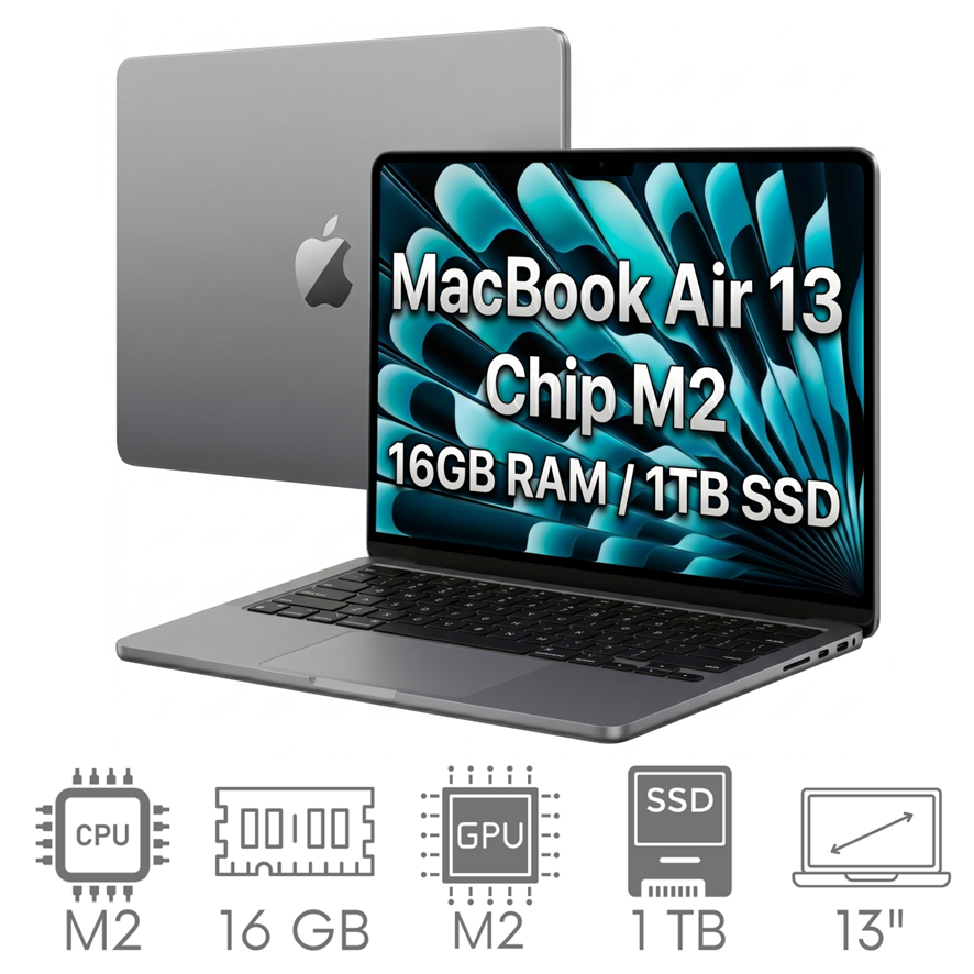 W MacBookach z M2 pamięć RAM i SSD są zintegrowane z chipem i nie można ich rozbudować po zakupie. Minimalny wariant 8 GB / 256 GB jest wystarczający do codziennej pracy, ale jeśli planujesz używać laptopa intensywnie — warto dopłacić do 16 GB RAM i 512 GB SSD przy zakupie. Egzemplarze używane często są dostępne od razu w lepszych konfiguracjach.