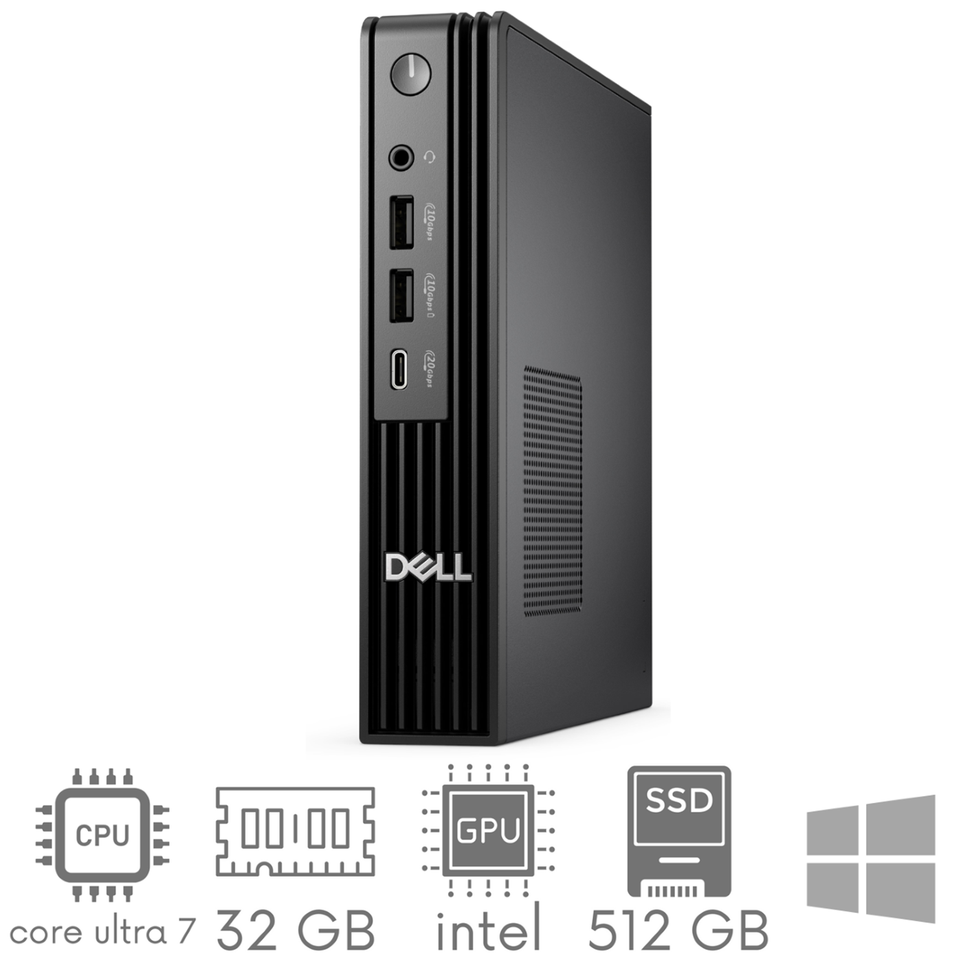 Dell Pro Micro Plus QBM1250Wyposażony w procesor Intel Core Ultra 7 265Procesor z nową architekturą, składa się z 20 rdzeni i 20 wątków w tym 8 rdzeni mocy oraz 12 rdzeni wydajności.