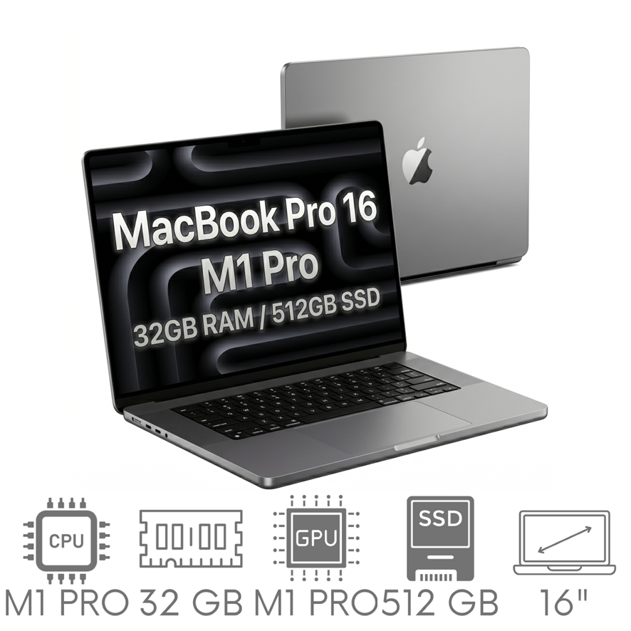 Apple MacBook Pro 16 A2485 M1 PRO 32GB 512 SSD 16,2" Liquid Retina XDR 3456x2234 WiFi BT Kam OS Sequoia PL Gw12mc