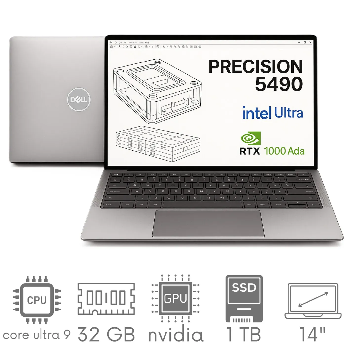 Stacja Graficzno-Robocza DELL Precision 5490 Ultra 9 185H 32GB 1TB SSD 14" FHD+ 1920x1200 RTX 1000 Ada 6GB WiFi BT KAM Win11Pro Gw12Mc